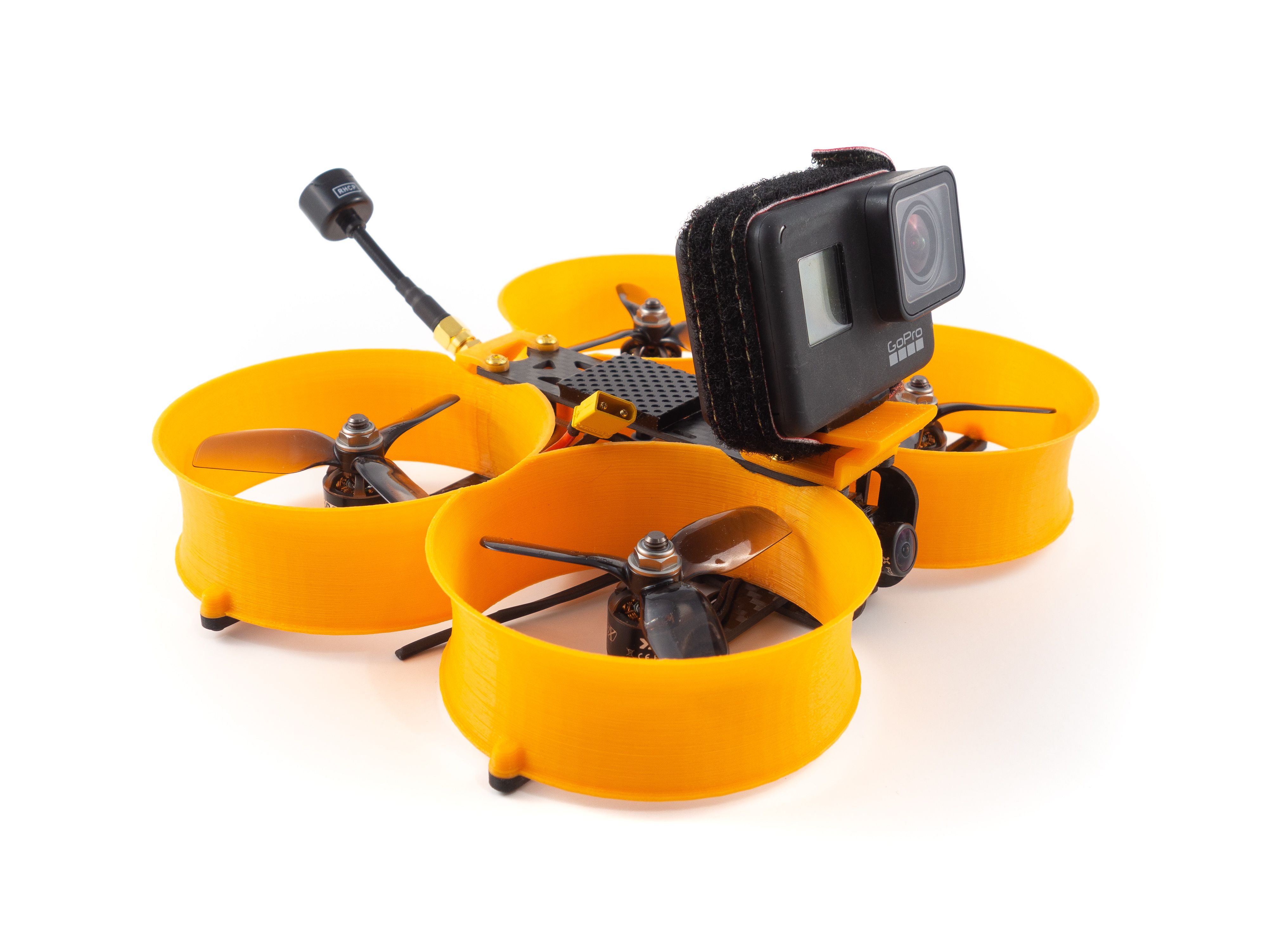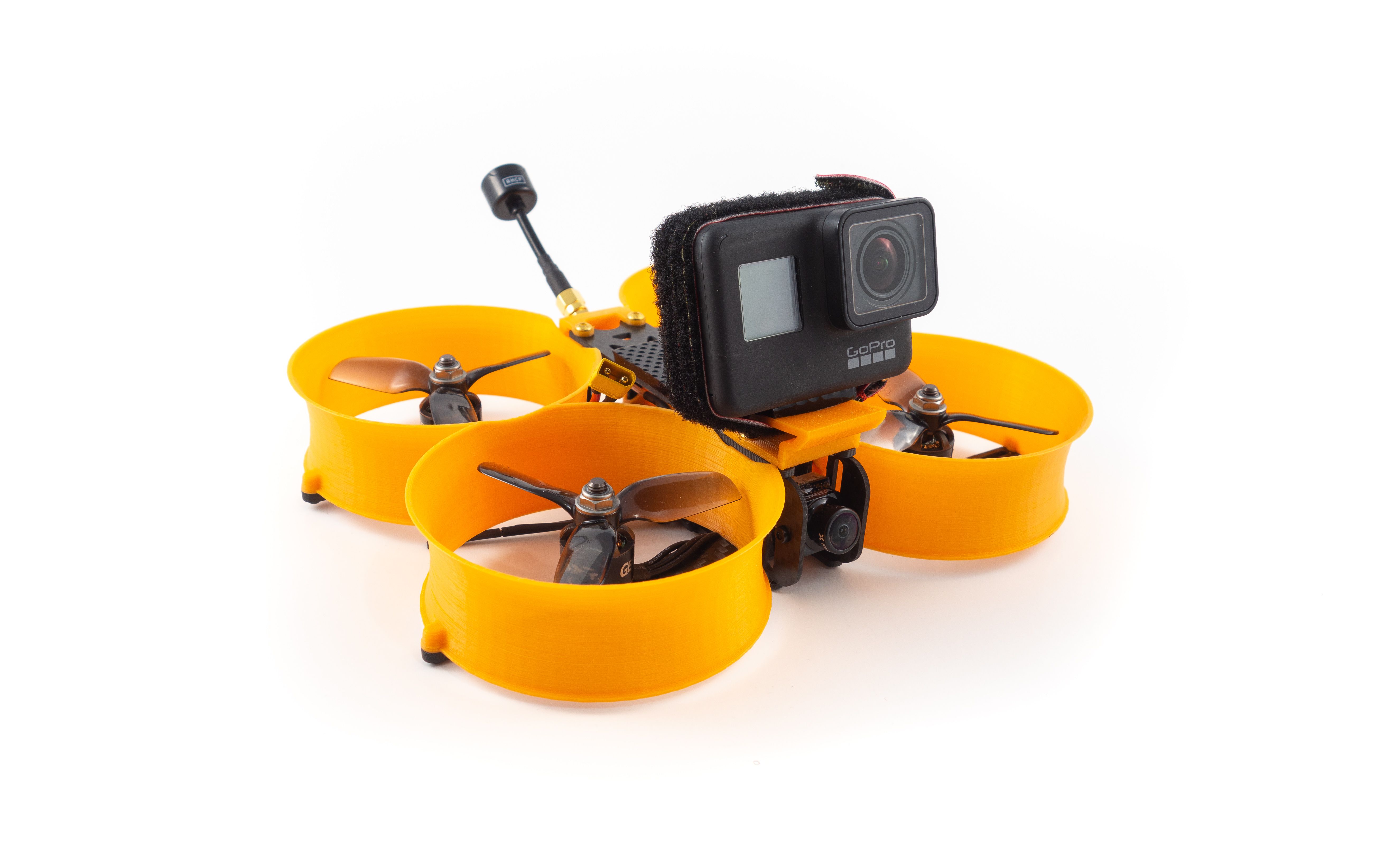 Now a traditional Cinewhoop isn't cheap. The most popular frame, the Squirt 2 commands a high price. This build is my attempt to build a Cinewhoop at a budget price, yet still offer the same cinematic style footage. It weighs in at 217g dry and 443g AUW with an 850mah 4S battery with a GoPro Hero7. I'm running the 3500kv motors.