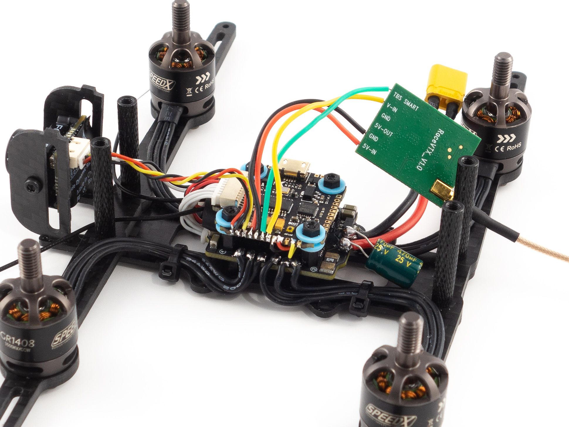 - Solder these wires to the 5v, GND and SBUS pads on the flight controller.