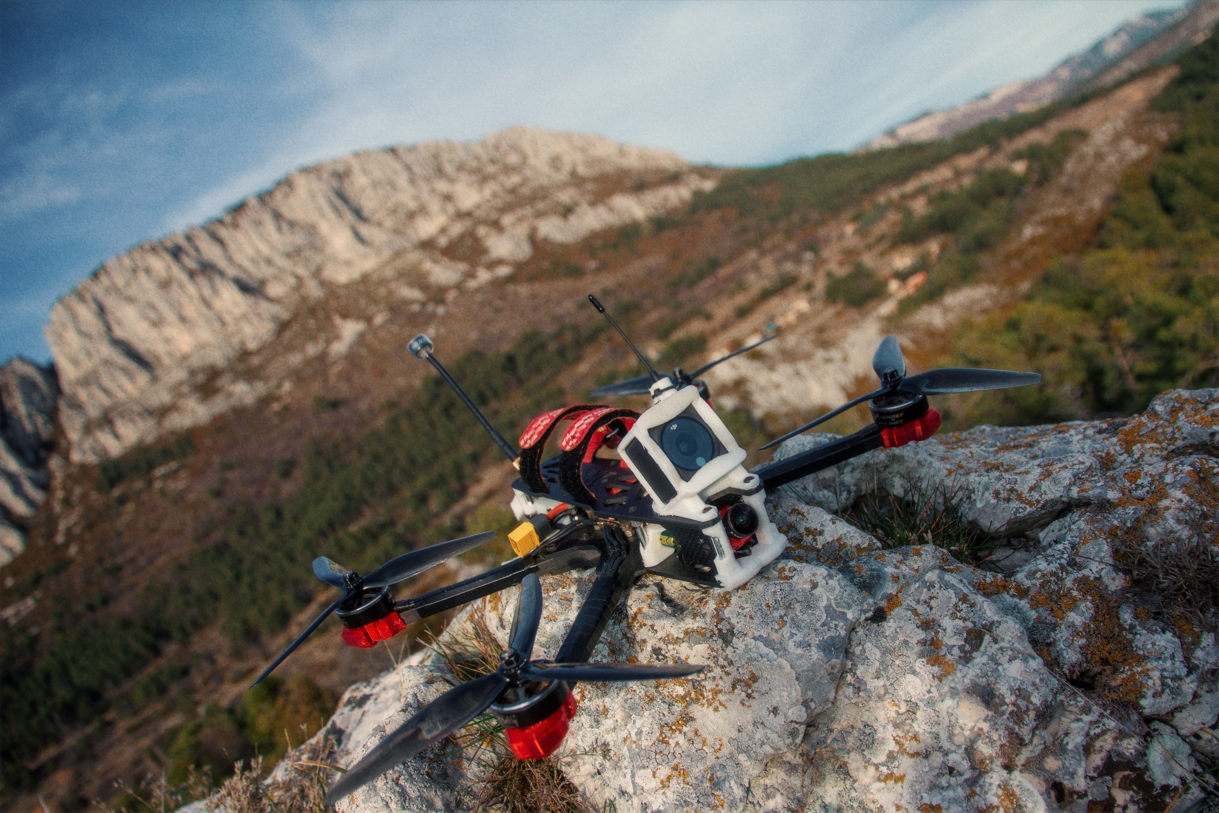 We designed this frame especially for Mountain Surfing and agressive flight style, Squished X geometry gives it much more stability than any deadcat I've flown before and keeps the props out of the fov above 25deg tilt with a gopro superview.