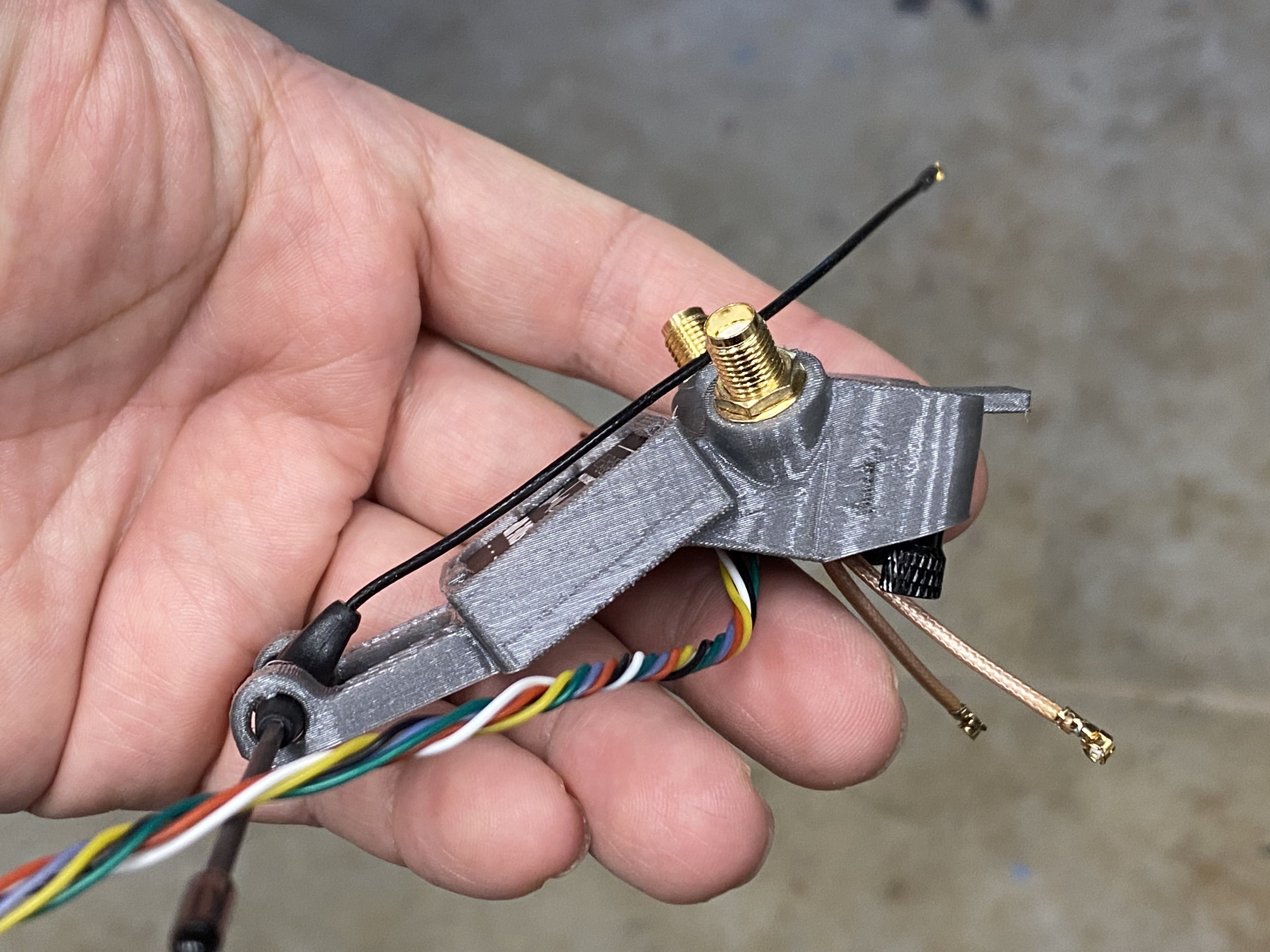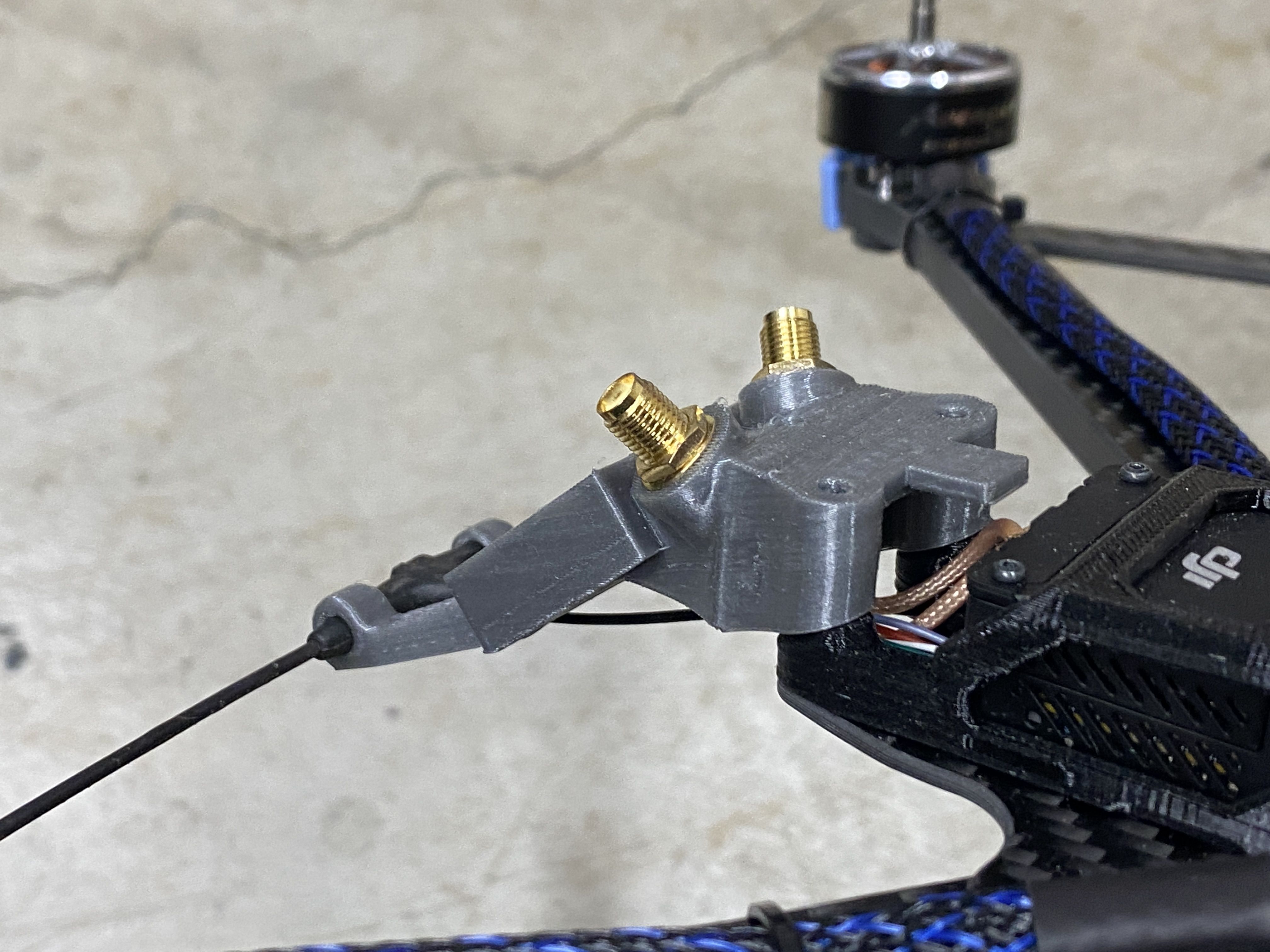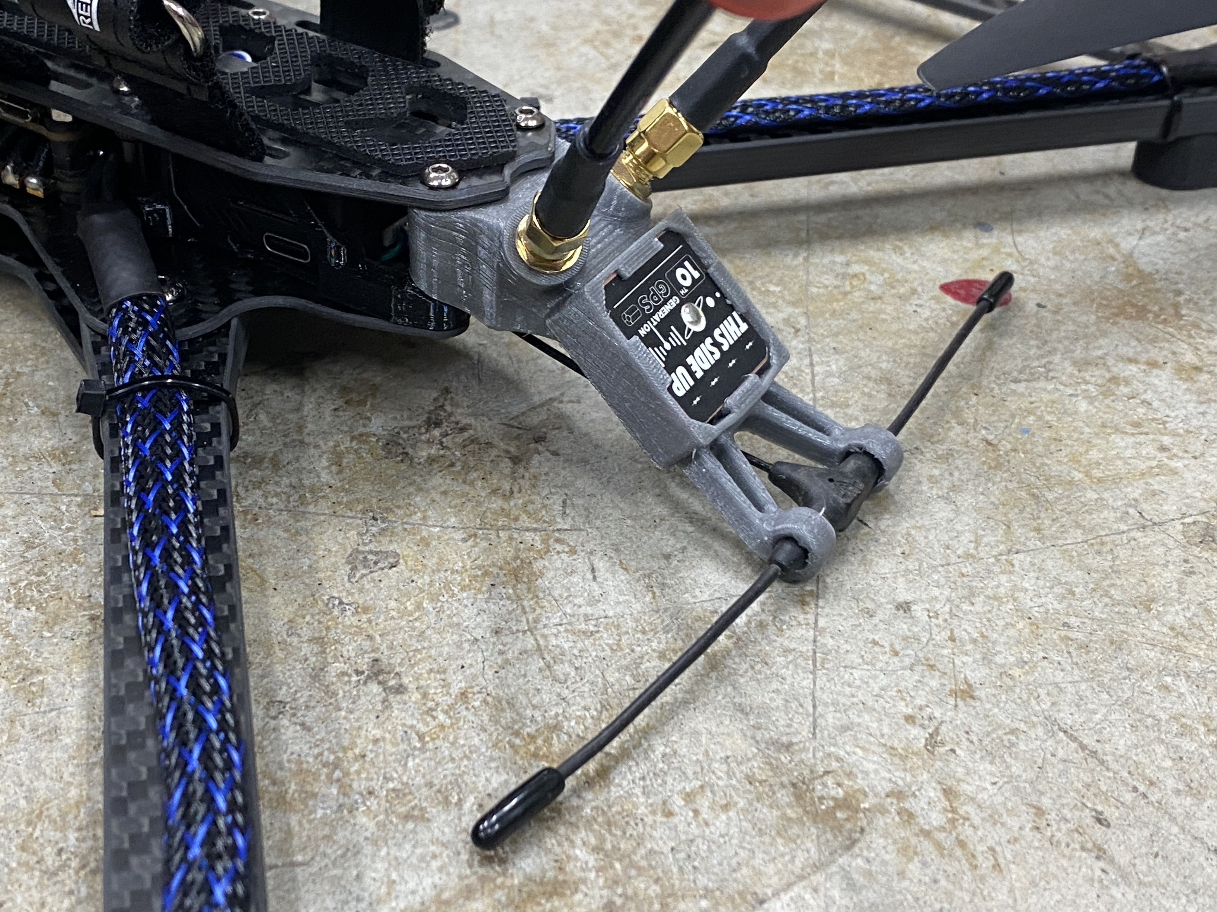 Next up is the GPS and antenna mount. The mount they included did not work with the SMA connectors that I am using. I wanted the antennas removable, so it is easier to transport the quad. For this mount, I started with a Rekon 7 gpm mount, but I to make some modifications so it will accept an SMA connector, the Flywoo GOKU GM10 Pro v3 GPS, and TBS Immortal T antenna.