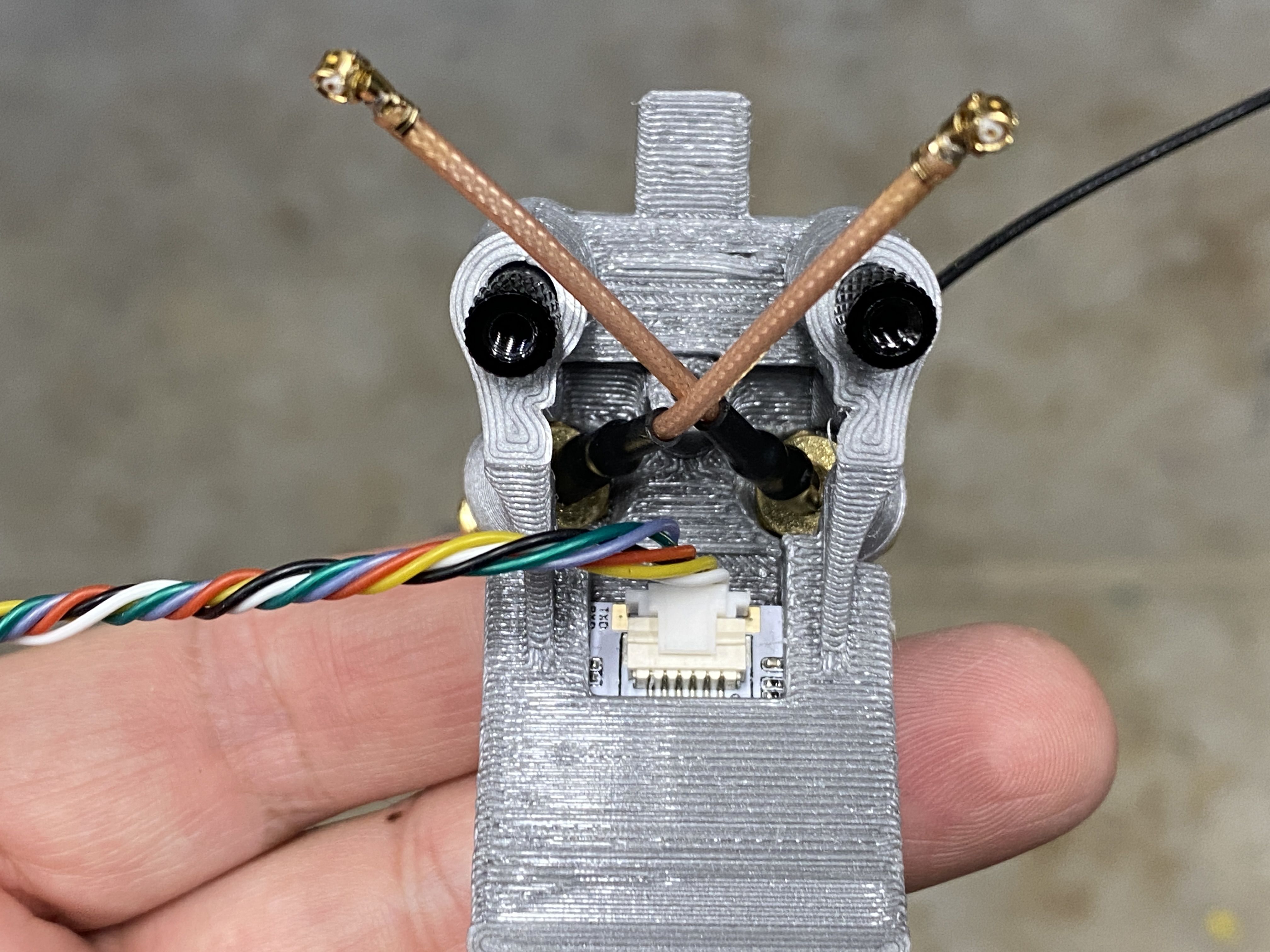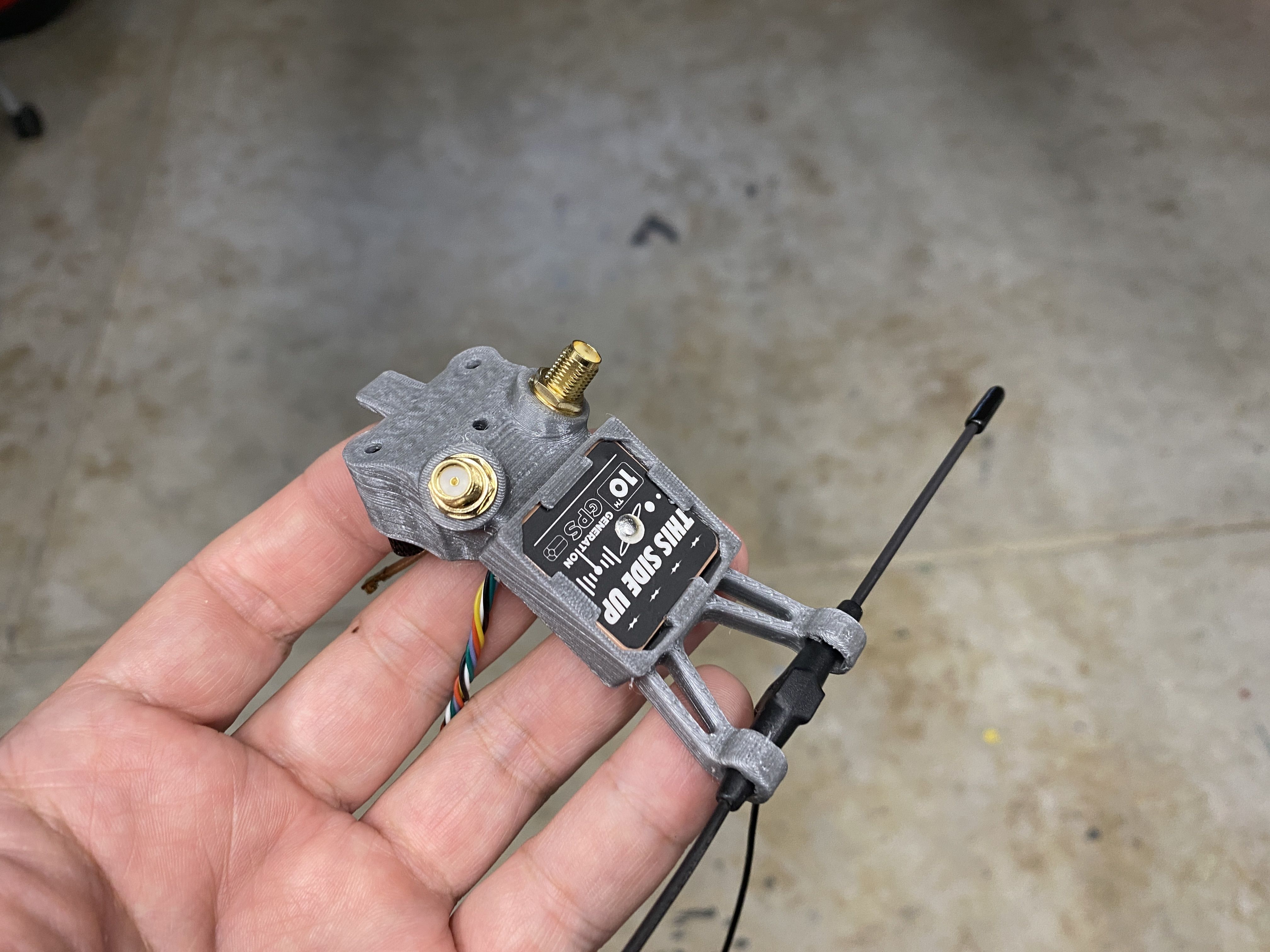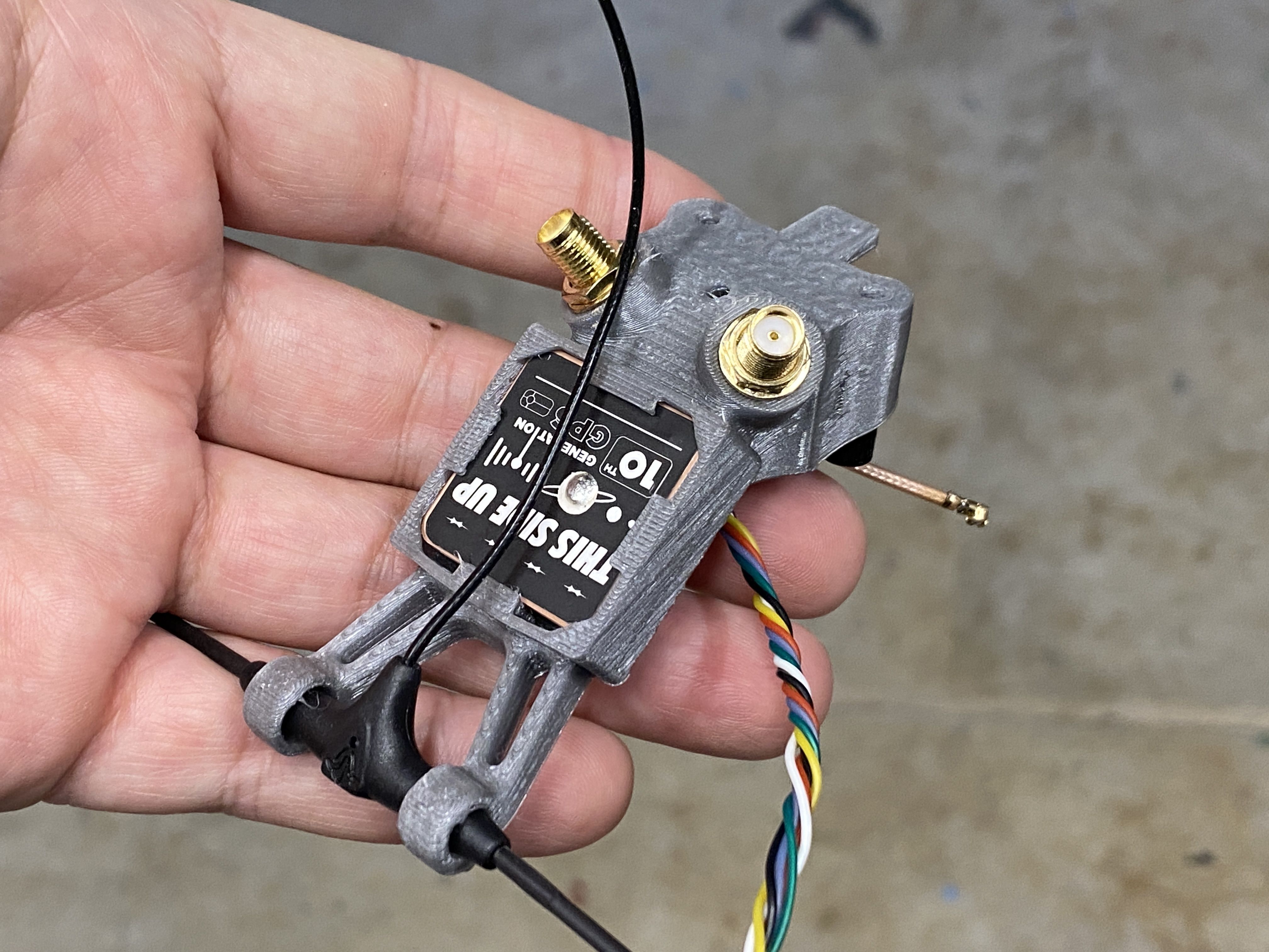 Next up is the GPS and antenna mount. The mount they included did not work with the SMA connectors that I am using. I wanted the antennas removable, so it is easier to transport the quad. For this mount, I started with a Rekon 7 gpm mount, but I to make some modifications so it will accept an SMA connector, the Flywoo GOKU GM10 Pro v3 GPS, and TBS Immortal T antenna.