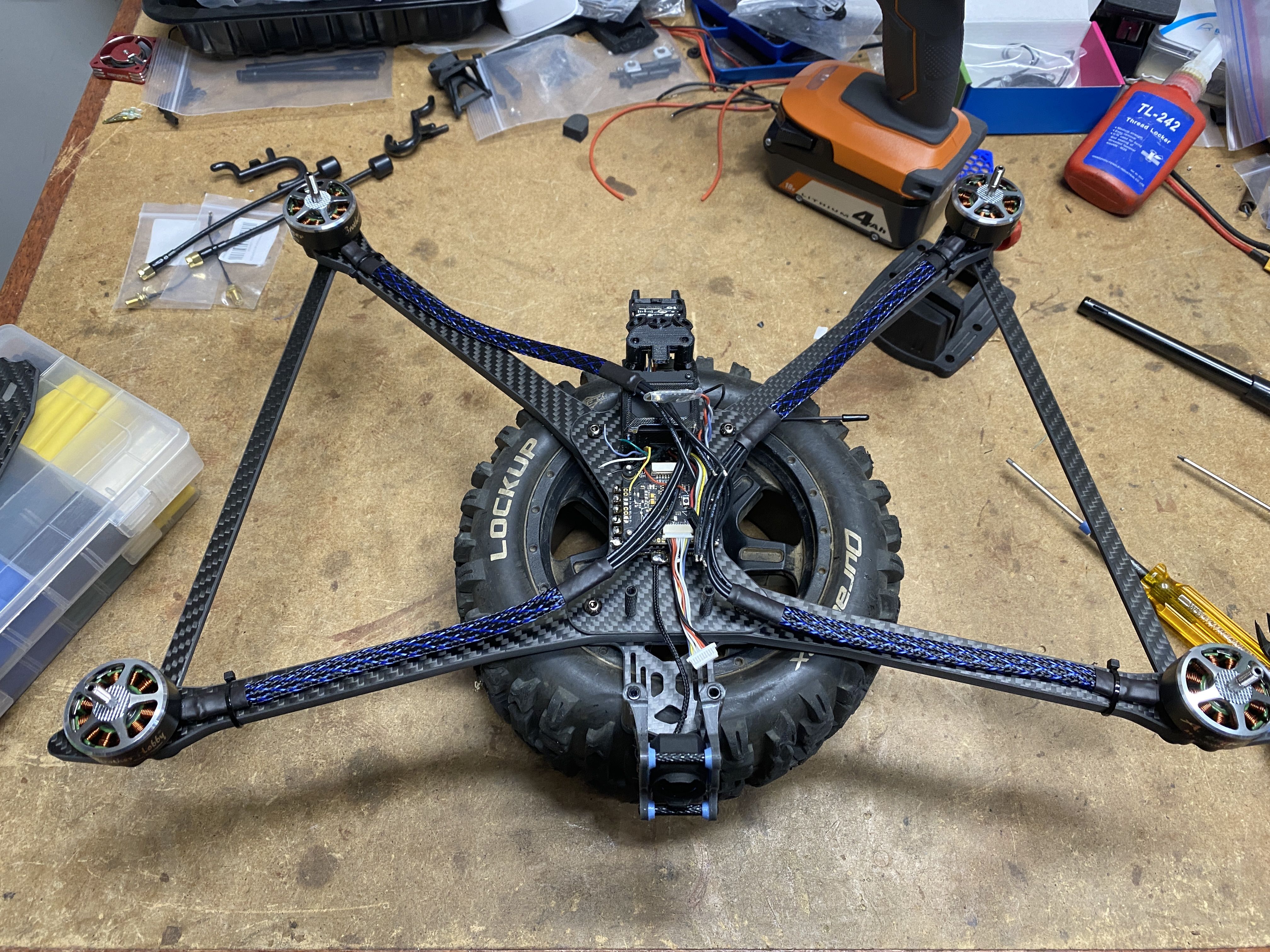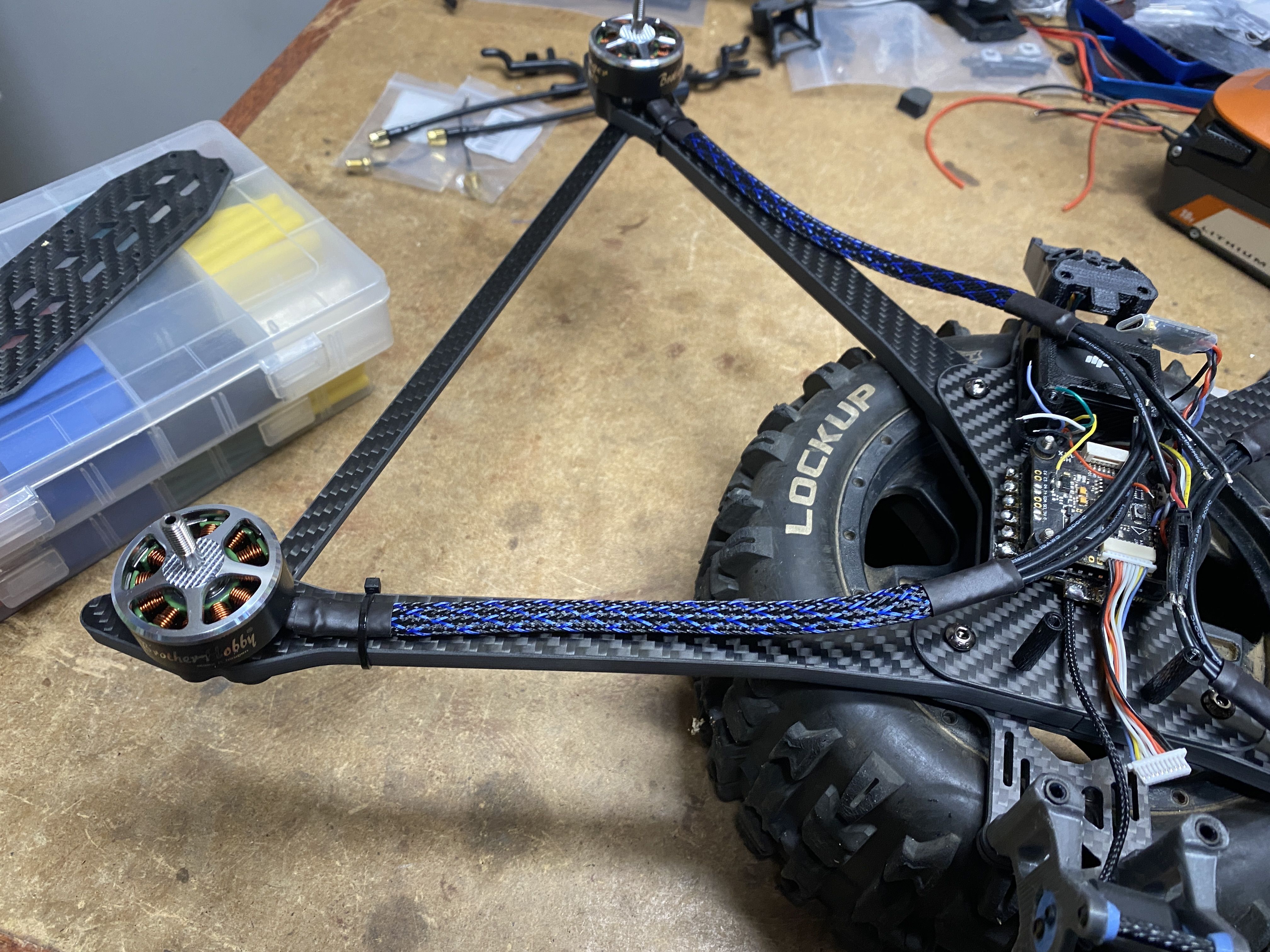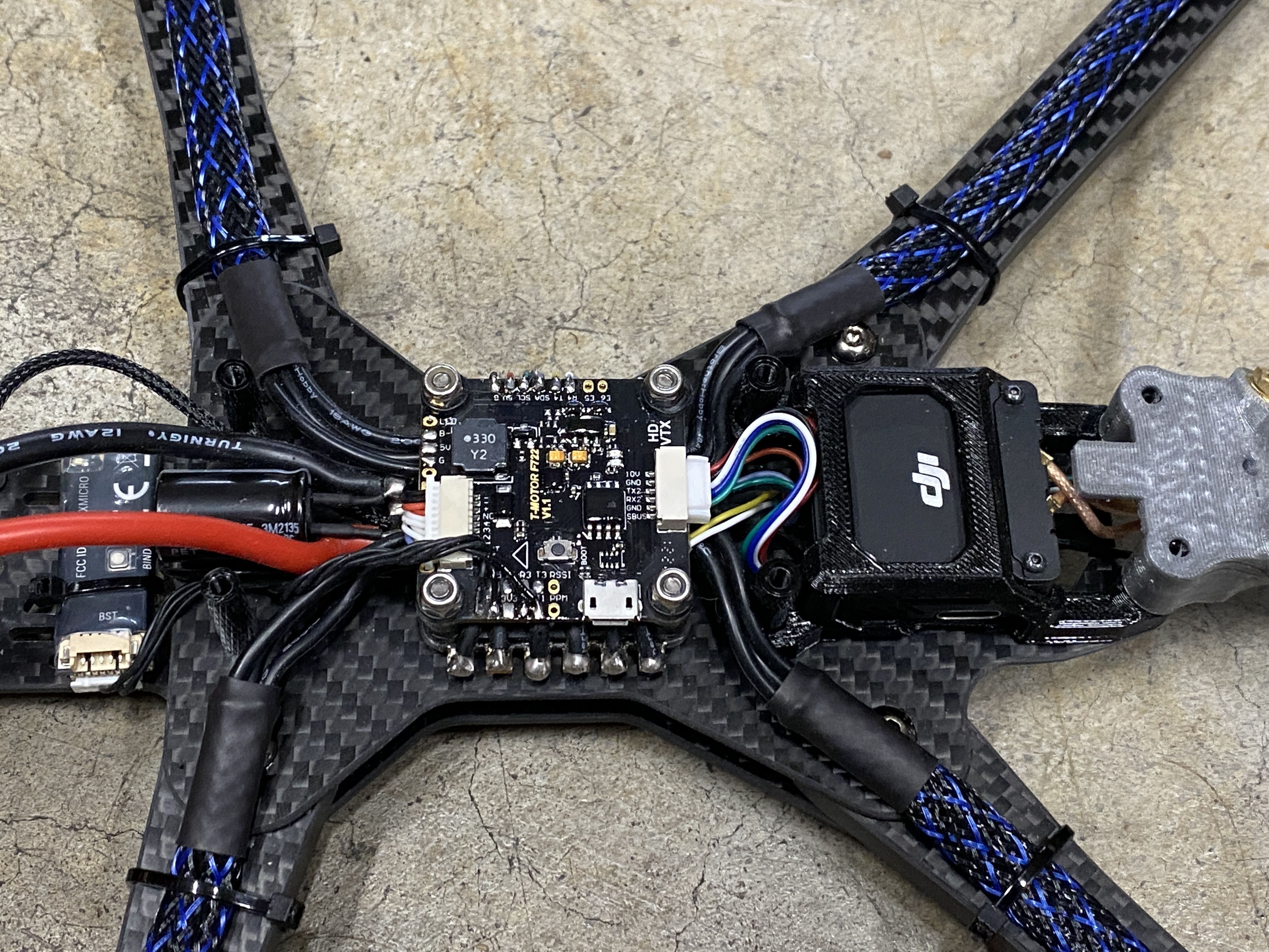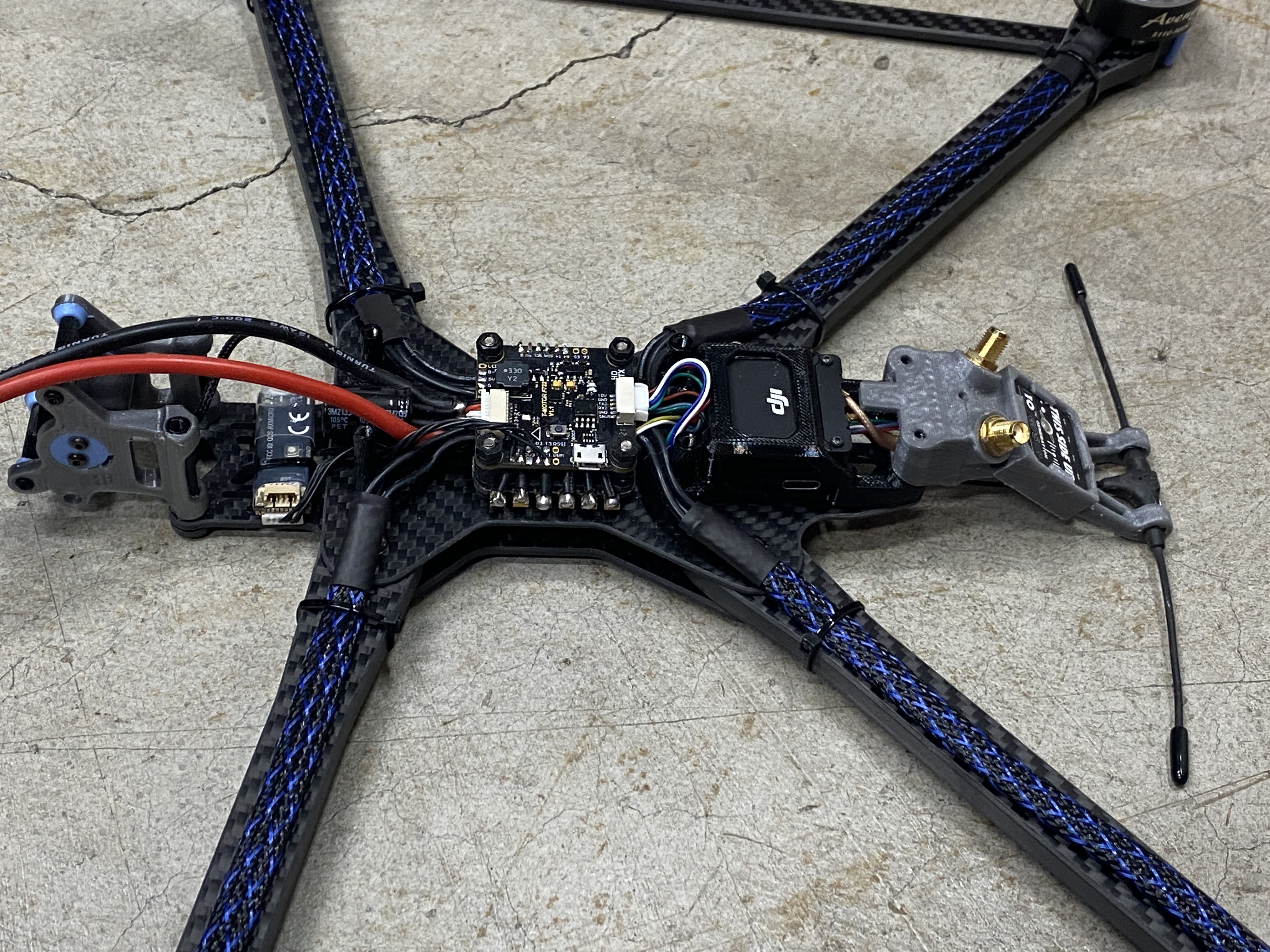 I was being lazy and did not want to figure out 2 different locations for the Diversity Crossfire RX, so I went with a regular Micro RX instead. I did not use a nano RX because I have so many micro RX and space is not an issue for this large frame.