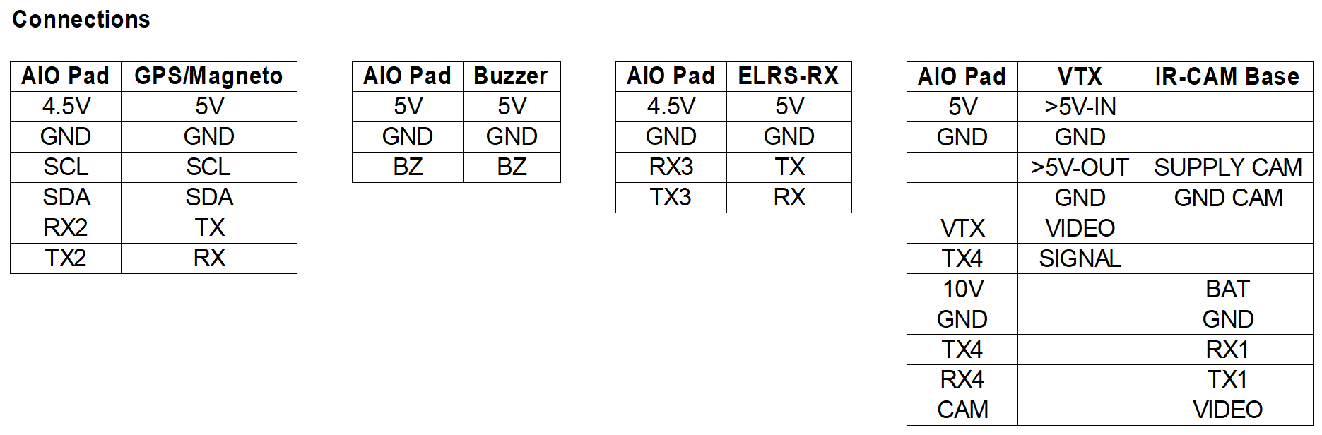 A configuration file for INAV version 7.1.2 is available free to download. Please make sure, the connections are like in the tables:
