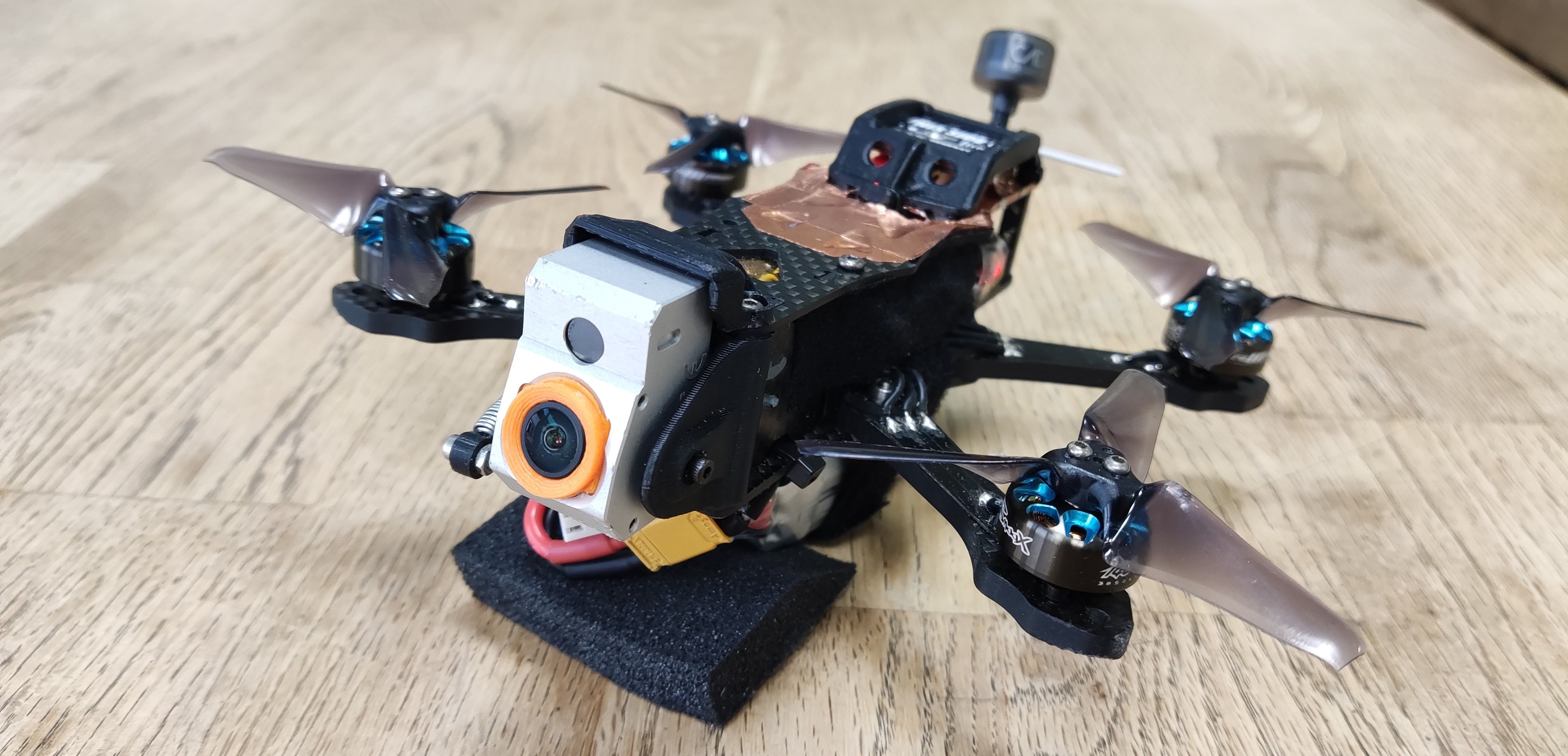 We have developed a compact thermal imaging solution for FPV drones. To prove the compactness, the goal was to realize a quad with less than 250g.