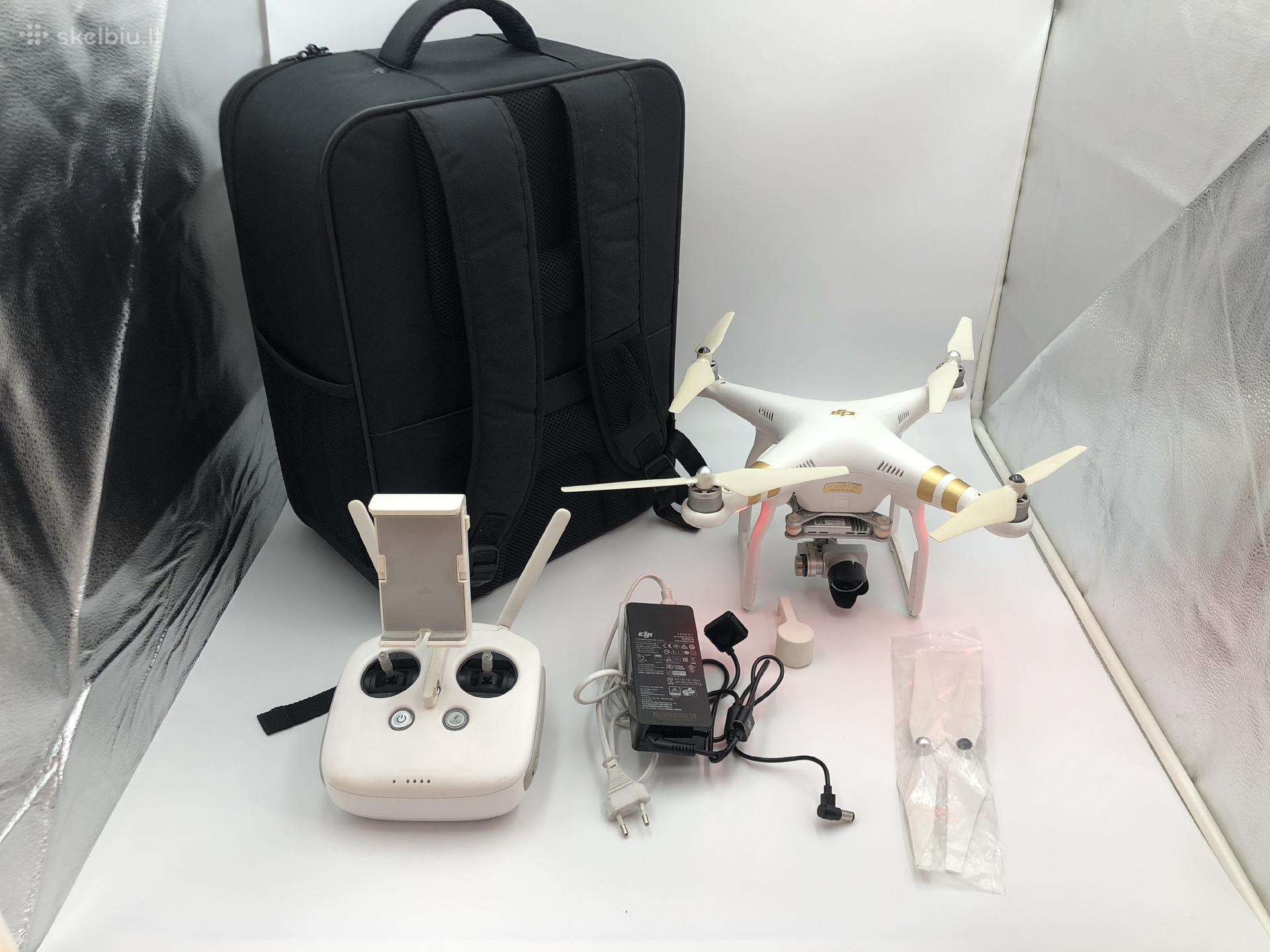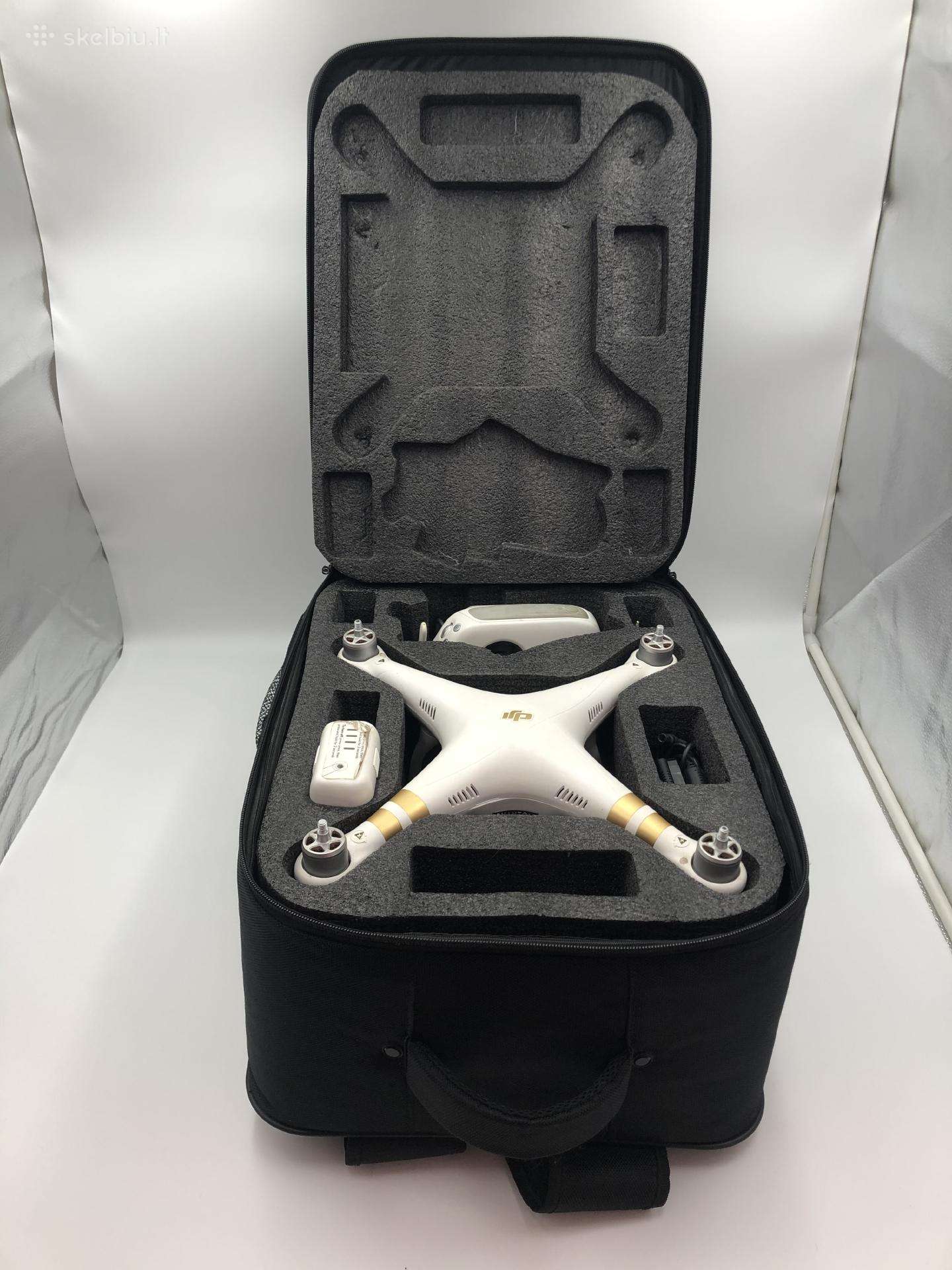 DJI Phantom 3 Professional W323B dronas su gera baterija, naudota 54 įkrovimo iškrovimo ciklus. 4K kamera. Viskas veikia. Komplekte yra valdymo pultas GL300C prie kurio jungiamas mobilusis telefonas, krepšys, įkroviklis ir 2 pakaitiniai sparnai.